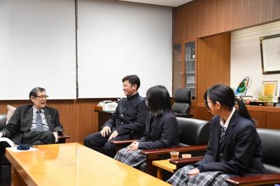 いわき市・高萩市・北茨城市広域観光行政連絡協議会事業の一環として実施された「キミノマチフィルム」の作成プロジェクトに、本校生徒が参加しました。AOI Pro.様のご指導のもと、本校生徒が企画・撮影・編集の全てを手掛けた北茨城市紹介動画が完成し、11月25日(火)に動画を作成した生徒達が北茨城市長との鑑賞会に伺いました。