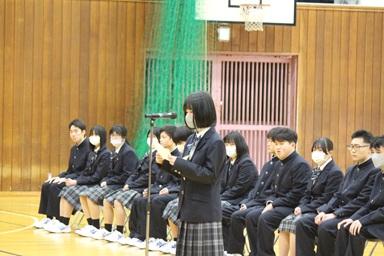 新入生は初めて会う先輩方に緊張している様子でしたが、先輩方の話に真剣に耳を傾けていました。2・3年生は生徒会が中心となり、会を進行しました。1年生は、一日も早く学校生活に慣れ、楽しい高校生活を過ごしてほしいです。